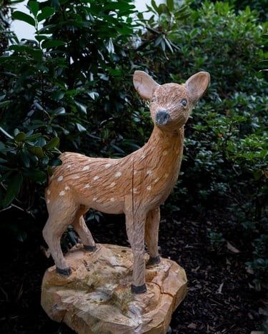 Lebendige Tierfiguren aus massivem Holz. Jedes Stück wird mit Präzision und Liebe zum Detail direkt aus dem Stamm gesägt.